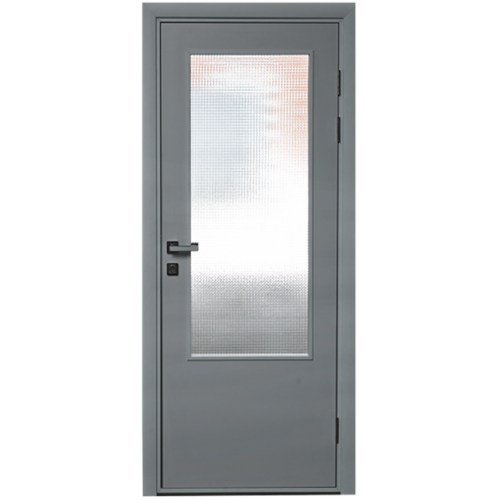 ДО - дверь остекленная, гладкая, серая, лист ПВХ композит (стекло белое матовое; стекло армированное 6 мм.).